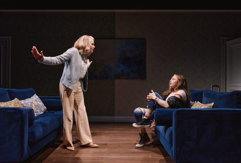 The cherry on top is the director of this production: David Cromer, a prolific and versatile artist (also a fine actor) who has shown a particular affinity for guiding ensemble pieces in intimate settings. His company here is completed by Amy Landecker, who like Ms. Moretz is best known for her screen work; the older actress’s chiseled, well-preserved beauty helps reinforce our first impression of Rhea as chilly and elusive.