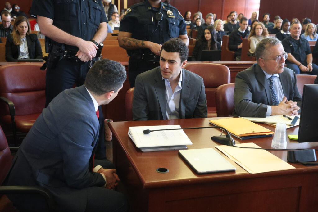 Mr. Mangione, who was sitting in the courtroom, dressed in a gray suit and a blue button down shirt, has pleaded not guilty to the charges. His attorneys argue that his rights were violated when he was arrested five days after the shooting, because his backpack was searched without a warrant and he was questioned for about 20 minutes without having been read his Miranda rights.