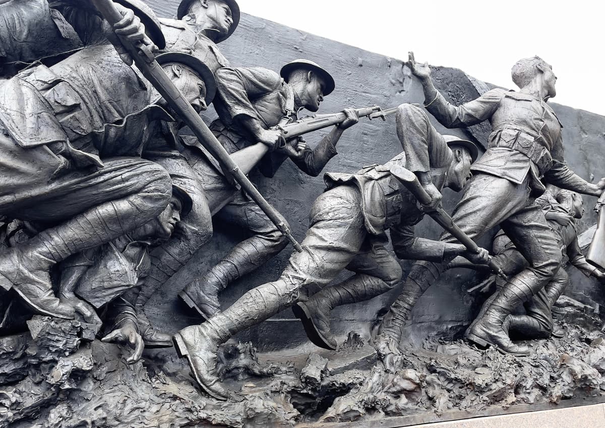 That’s quite a statement, given the tremendous works already extant. We think of Augustus Saint-Gaudens’ memorial to Robert Gould Shaw and the 54th Massachusetts (Shaw fell in action against the Confederates at Charleston). Not to mention paintings; we think of John Singer Sargent’s “Gassed,” which was painted from notes and sketches by Sargent at a gassing station he visited during World War I and which now is with the Imperial War Museum.