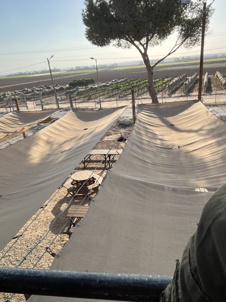 “We have Merlot, Syrah, Malbec,” Mr. Moses says during this reporter’s recent visit to his home Kibbutz, Nir Oz. As we stand atop a watchtower he’s pointing to a soon-to-be harvested grape patch below. We can easily see the Gaza border less than a mile away. Constant explosions can be heard as the war goes on.
