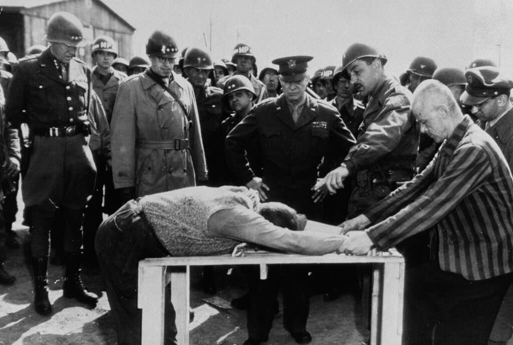 Soon after America’s 4th Armored Division liberated the Ohrdruf concentration camp in Germany in April 1945, Eisenhower, the Supreme Allied Commander, visited to bear witness, speaking to the living skeletons who had survived.