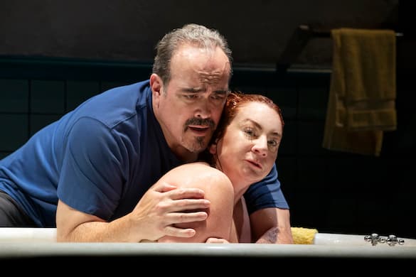 David Zayas and Katy Sullivan are even more moving as, respectively, Eddie and Ani, in part because these characters are older, with less time left for a change in course, or luck — though as Ms. Majok repeatedly suggests here, age can be measured in terms of experience as well as years. This couple also gets the most gorgeously lyrical, and piercing, scene in the play, in which Eddie bathes Ani, and a new tenderness unfolds between them.