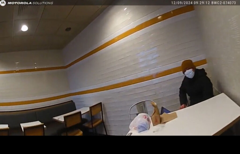 “Arriving at the McDonald’s,” the defense’s court filing details, two patrolmen, “both in full uniform and displaying badges, approached Mr. Mangione at 9:29 a.m. as he sat at a table in the back of the restaurant.”