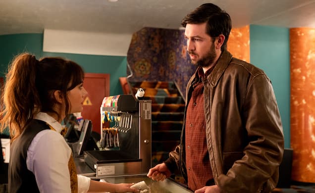 The movie version takes the story and does more than just run with it, leaping, tripping, soaring, and coming crashing down over it. We begin as the story begins, in a movie theater. Protagonist Margot works the concession stand at an arty cinema in an unspecified college town. After some mild flirting with a patron, who will later become the other half in this spiky pas de deux, we see Margot walk back to campus and encounter a big dog, an incident not in the short story. Evoking Stephen King’s “Cujo,” director Susanna Fogel and screenwriter Michelle Ashford waste no time in making clear that their movie will ramp up the tone of uneasiness — even horror — in the text.