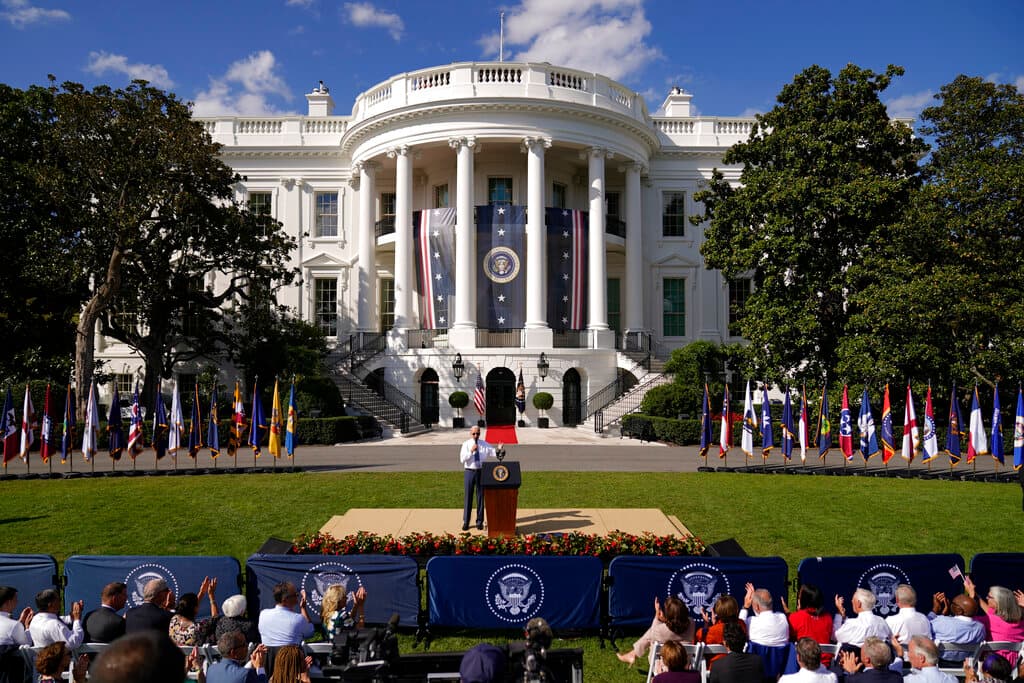 Mr. Biden welcomed hundreds of guests — politicians, environmental activists, union workers, and Cabinet secretaries among them — to the South Lawn for a celebration of the so-called Inflation Reduction Act passed by Congress just before the August recess.