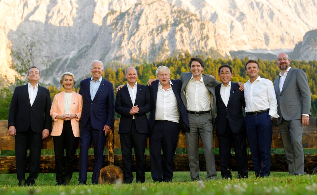 The surreal trading of sexism-tinged barbs started earlier this week in a stuffy conference room at the G-7 summit in Germany, where Mr. Johnson kidded with his Canadian counterpart, Justin Trudeau, about doffing their jackets in order to mock a series of infamous photographs of a shirtless Vladimir Putin on a horse. After Mr. Trudeau stated, âWeâre going to get the bare-chested horseback riding display,â Mr. Johnson replied, âThere you go: Weâve got to show them our pecs.â