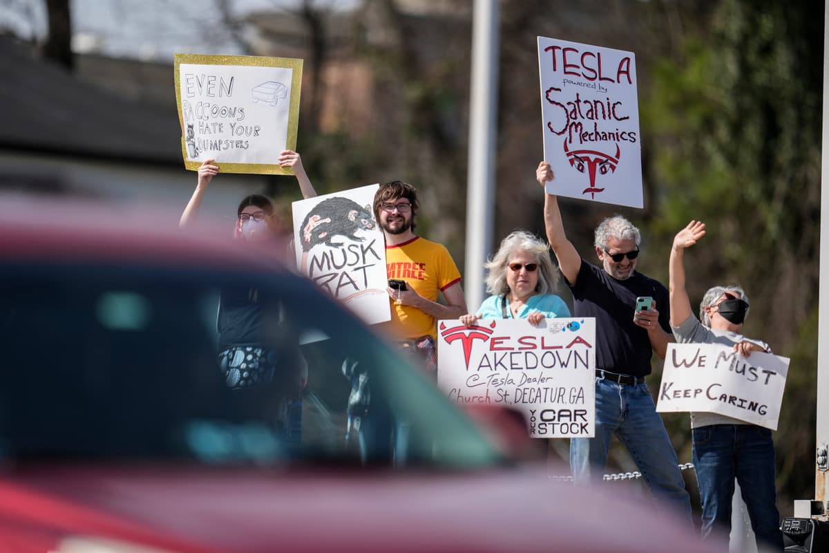 Across the country, anti-Musk rallies have varied in size and intensity. Some involve just a few folks on the roadside waving signs and encouraging honks of support. Others bring hundreds of protesters swarming Tesla hubs, leading to chaotic scenes, police intervention, and arrests.