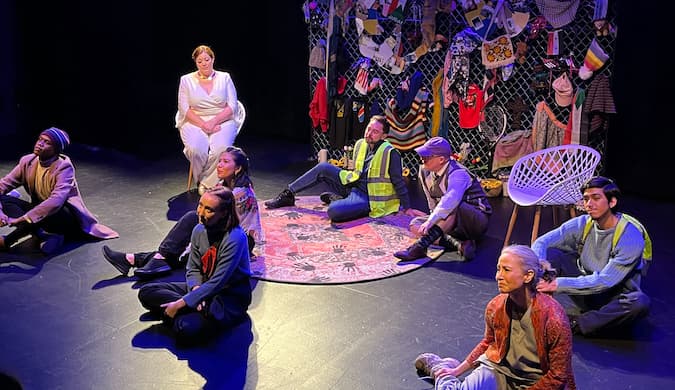 It’s a sign that “Refugees” will not offer any pie-in-the-sky solutions to the enormous, and related, challenges it addresses. Using characters drawn from Greek mythology, Mr. Kaliski, who also directs the production, examines the increasingly inextricable link between immigration and climate change, and the role that privilege, or lack of it, plays in this connection.