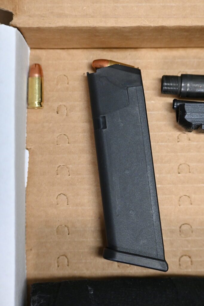 Bodycam footage showed Officer Wasser and Deputy Chief Derek Swope take the backpack and the handgun to a hallway, where she is seen clearing the gun. She continued to look through the backpack and found a silencer. “Oh my God,” she can be heard saying and laughing.