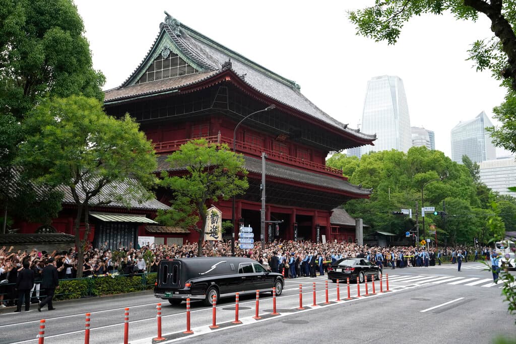 Hundreds of people, some in formal dark suits, filled sidewalks outside Zojoji temple in downtown Tokyo to bid farewell to Abe, whose nationalistic views drove the governing party’s conservative policies.