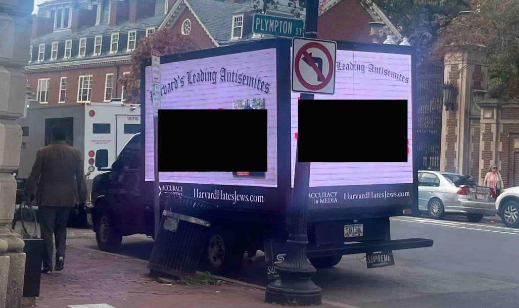 The president of a watchdog group, AccuracyInMedia, which put up the truck-mounted billboards on campus, expressed outrage over the creation of a task force to support the very students he has sought to expose. “It’s morally outrageous,” Adam Guillette tells the Sun, “that antisemitism is out of control at Harvard.”