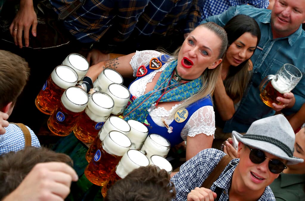 MUNICH — Oktoberfest is back in Germany after two years of pandemic cancellations — the same bicep-challenging beer mugs, fat-dripping pork knuckles, pretzels the size of dinner plates, men in leather shorts and women in cleavage-baring traditional dresses.