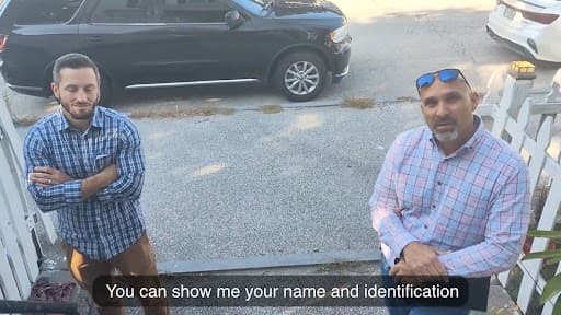 The agents decline to show their IDs or state their full names.
