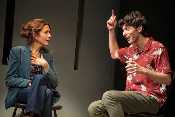 There is, nonetheless, a heady seduction occurring in “Letters from Max, a ritual,” based on a book Ms. Ruhl wrote with Ritvo and published after his death. It’s forged, as some more conventional seductions have been, through poetry. Max, who is played at alternate performances by Ben Edelman and Zane Pais, is a dizzyingly precocious writer of verse; watching Sarah, played by the radiantly expressive Jessica Hecht, react to them, you might even be reminded of Cyrano’s Roxane, rapt as she listens to another man deliver the true poet’s words.