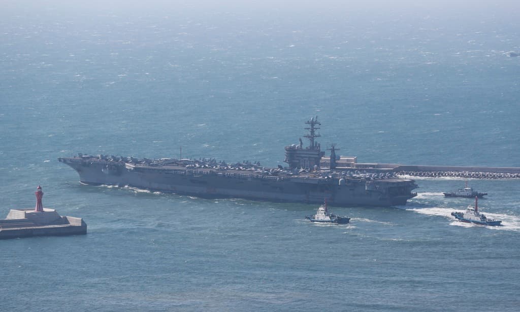 The aircraft carrier USS Nimitz led the war games, its fighter planes flying off the deck, coordinating with fighters from Korea and Japan while Aegis-class destroyers from all three navies simulated searching for enemy submarines. It was the first time in seven years that they have worked together in such exercises.