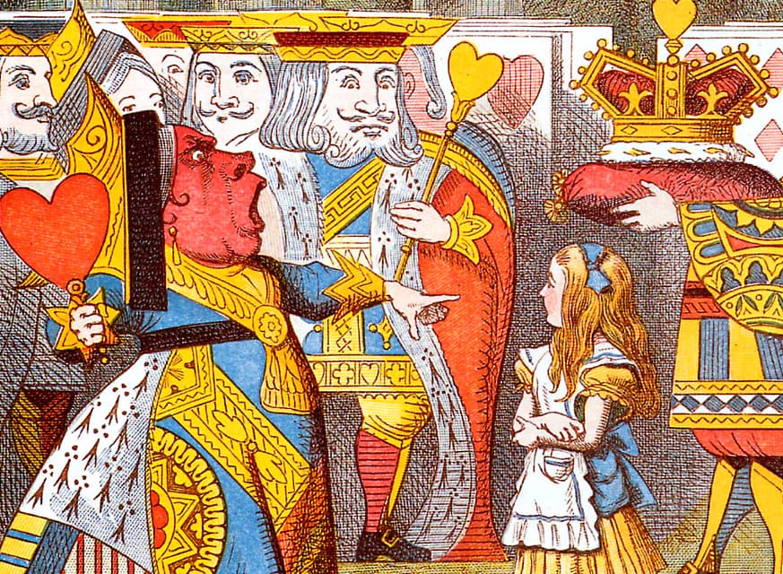 “Not yet!” the Rabbit says. “There’s a great deal to come before that!” The trial concludes and the King again commands, “Let the jury consider their verdict,” prompting an objection from the Queen of Hearts, who has moved the goalposts once again. “No, no!” she says, “Sentence first, verdict afterwards.”