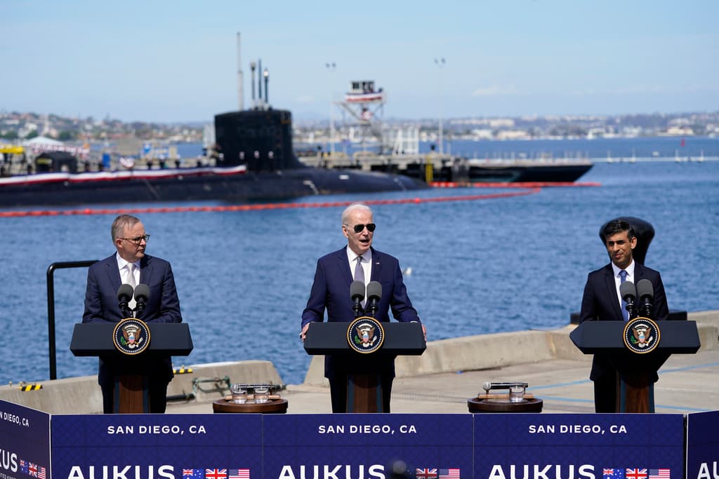 Mr. Biden flew to San Diego to appear with the Australian and British prime ministers, Anthony Albanese and Rishi Sunak, as they hailed an 18-month-old nuclear partnership given the acronym Aukus — for Australia, the United Kingdom, and the United States. The partnership, announced in 2021, enables Australia to access nuclear-powered submarines, which are stealthier and more capable than conventionally powered vessels, as a counterweight to Communist China’s military expansion.