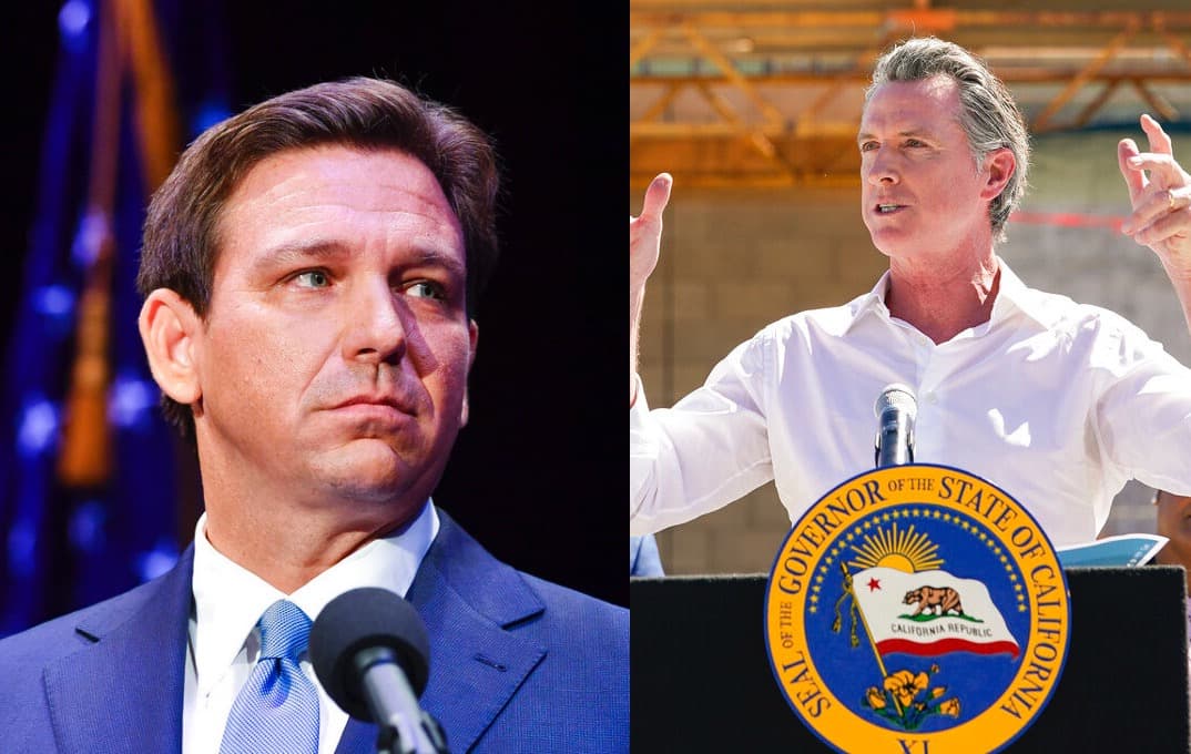 Governor DeSantis (left) of Florida and Governor Newsom of California. AP Photos