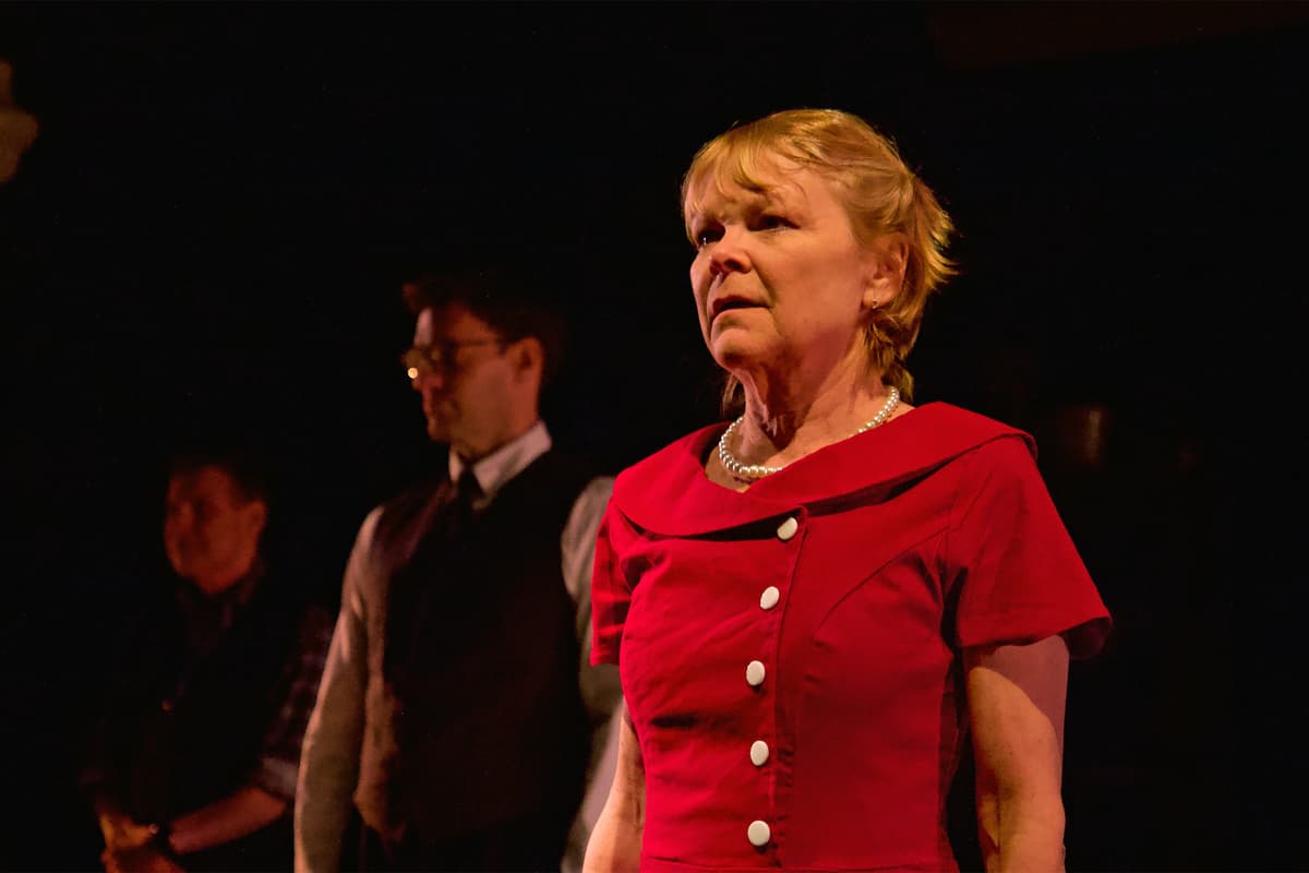 Sexism is, as you’d expect, the most prominent sin in “Mrs. Loman,” which reimagines not only its heroine but other, smaller female roles from “Salesman.” A middle-aged neighbor named Esther, given an exaggerated sense of mischief that’s emphasized in Linda Jones’s performance, turns up at the post-funeral gathering; there are immediate hints and increasing suggestions that she’s Willy’s mistress from Boston, who was identified simply as The Woman in “Salesman.”