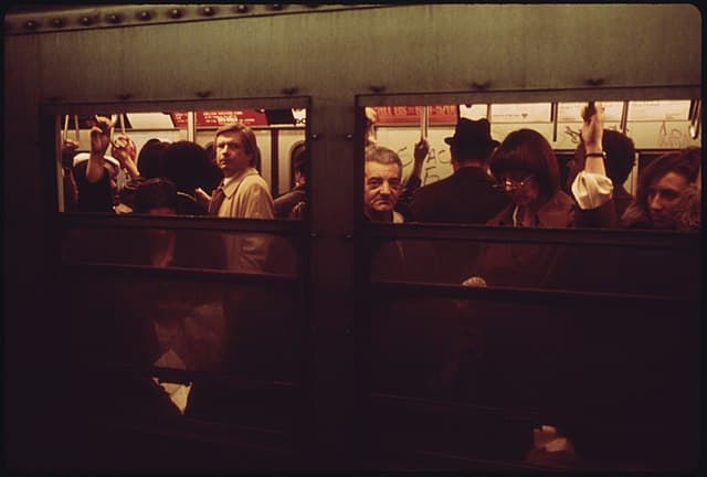 In the first stanza, the rain’s gray sharpness suggests, paradoxically, the dry “golden” sand of a Red Sea parting, an escape from bondage. In the second, a glimpsed face, “yellow-pale,” recalls a hanged man: Absolom? Judas? Criminal, victim, suicide? In the third, meanwhile, a row of fingers “tangled” on the bar above the seats evokes the murdered wives of Bluebeard, the fairy-tale villain whose final wife, opening the forbidden room in the castle, discovers her predecessors hung up like sides of beef. This association melts into the image of human bodies as fruit, heavy on the boughs of an orchard. The final stanza, with its one “brave, unbroken” soul and its closing allusion to the Crucifixion, circles back, like the trolley on its rounds, to the freedom glimpsed through rain at the poem’s beginning.