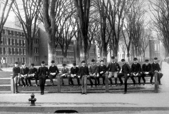 “Talk,” one of these Campus Sonnets, is a good example of what college had seemed to those who did well at it. The Shakespearean sonnet (rhymed abab cdcd efef gg, with a not-entirely earned Petrarchan break between the opening octave and the concluding sestet) is very much a young man’s poem: The casual joy of young friendship allows indulging a sweet nostalgia for what is not yet in the past.