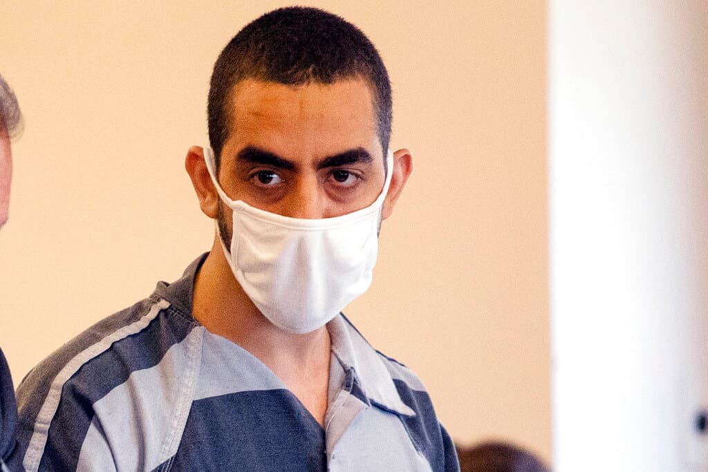 Mr. Matar, who has been held without bail since his arrest, arrived at Chautauqua County Court in a black-and-white striped jail jumpsuit, wearing shackles and a white medical face mask.
