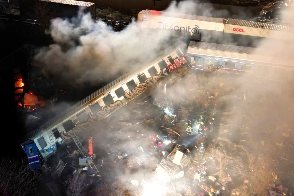 A packed passenger train and a freight train collided head-on about midway between Athens and Thessaloniki near the city of Larissa, causing multiple rail cars to derail at high speed, with at least three bursting into flames. Startling images of twisted, smoking wreckage strewn across the tracks and adjacent fields coupled with harrowing survivor accounts have underlined the scale of the destruction.