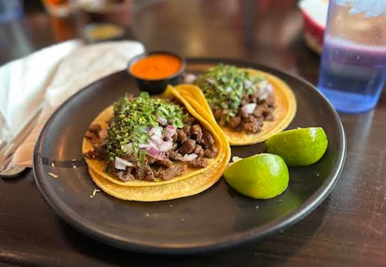 Popular items include the tacos de bistec, which are tender chunks of beef served on two round, hand-pressed corn tortillas and nicely accentuated by a shot of salsa roja; and the Super-Rica Especial, which is a marvel of roasted poblano peppers with crispy cheese and marinated pork served in three tortillas.