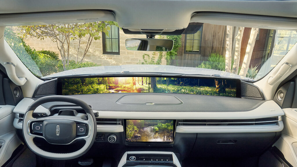 It doesnât look like one on the inside. There is a 48-inch digital display that spans the entire dashboard. It encompasses the instrument cluster, navigation and several configurable modules that can be programmed to show the weather, tire pressures, and other things. A secondary touchscreen sits within the driverâs reach at the top of the center console.