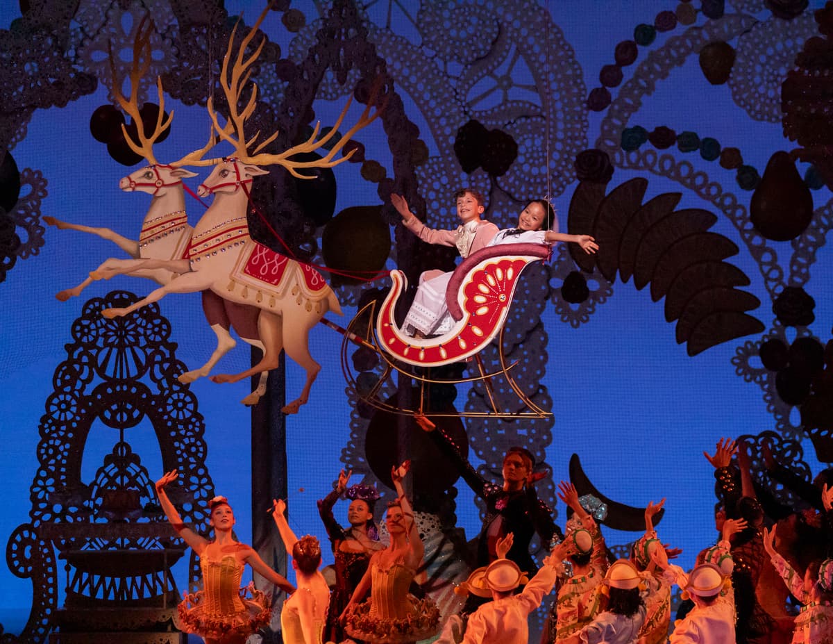 The scene that arrests me most is the “Waltz of the Snowflakes” at the end of Act I. Sixteen corps de ballet women leap in a snowy forest as cascading confetti graces their ice-blue dresses. Composer Pyotr Tchaikovsky’s silky symphony emanates from the interplay of clarinets, flutes, harps, oboes and trumpets in the pit of the orchestra below.