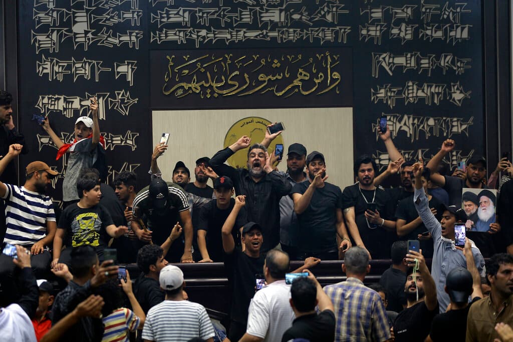 Mr. al-Sadr’s loyalists continued their sit-in for a third day. Thousands among them stormed the parliament on Saturday, for the second time in the span of a week. This time, they did not disperse peacefully.