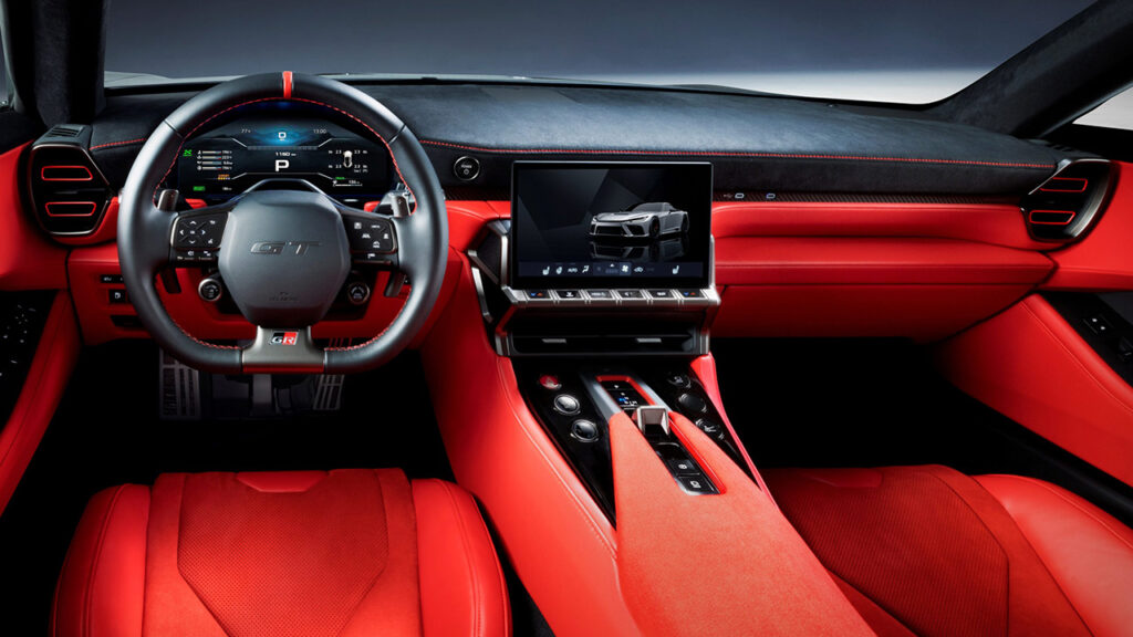While the GR GT is not electric, it is a hybrid. The turbocharged 4.0-liter V8 sends power to a transaxle-style eight-speed gearbox mounted behind the cabin, where it is boosted by an electric motor before being directed to the rear wheels. The system’s combined output is 641 horsepower and the top speed is expected to be close to 200 mph.