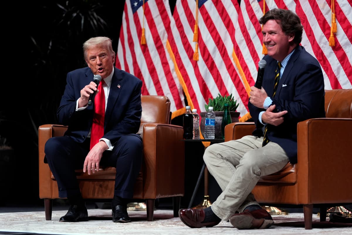 During an event at Glendale, Arizona, with former Fox News host Tucker Carlson, the Republican presidential candidate was asked if it is weird to see Ms. Cheney campaign against him.