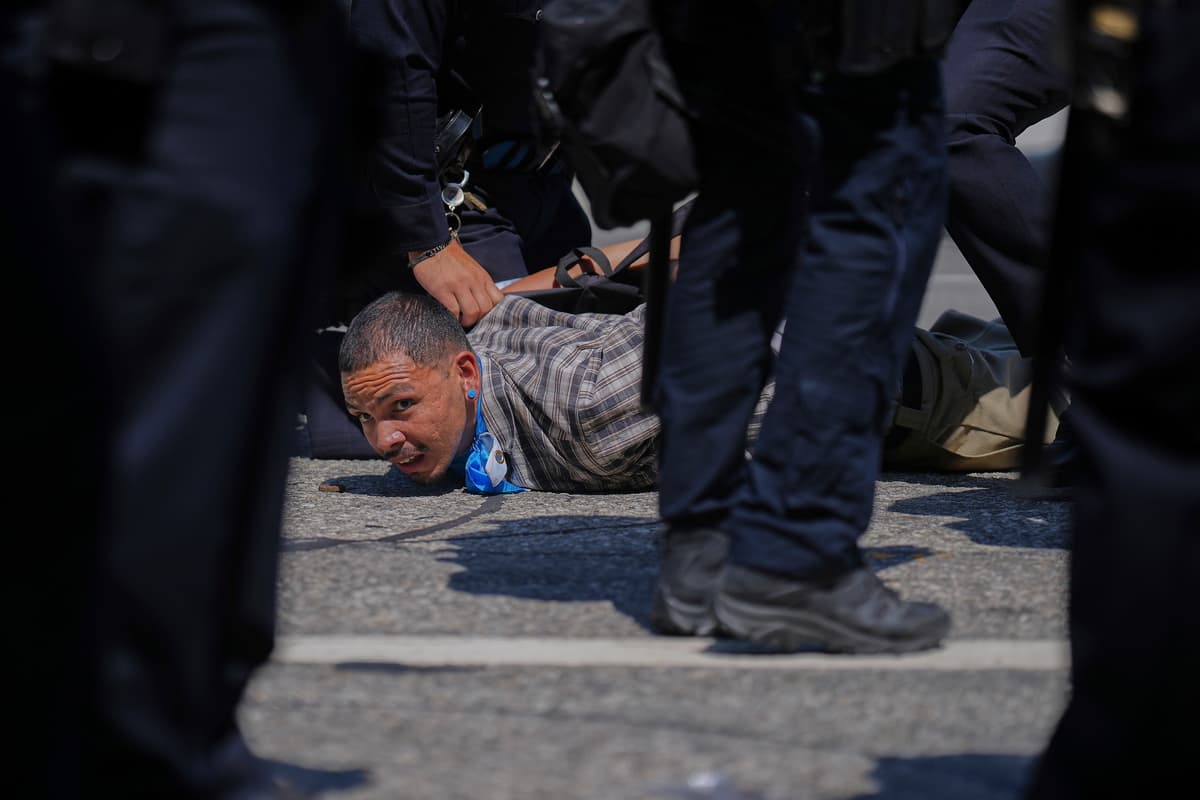 Tensions were high after a series of sweeps by immigration authorities the previous day, including in LA’s fashion district and at a Home Depot, as the weeklong tally of immigrant arrests in the city climbed past 100. A prominent union leader was arrested while protesting and accused of impeding law enforcement.