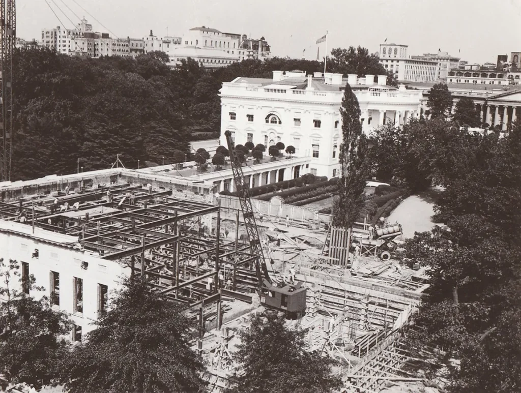 Things got so bad that President Truman declared the house was in imminent danger of collapse and ordered an evacuation. He shut the place down and had the insides stripped down to the studs, forcing him to live across the street at Blair House between 1949 and 1952.