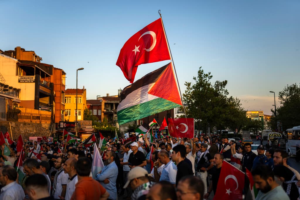 Political activists assembled at the Izmir Port equipped with Palestinian flags and anti-Israel banners, promising to stay at the port until the warship leaves, a Lebanese news service, Al Mayadeen, is reporting. The protesters are waving signs saying “Our country’s ports cannot be supply and logistics points for murderers,” “Down with Israel,” “Down with NATO,” and “Down with USA,” the outlet notes.