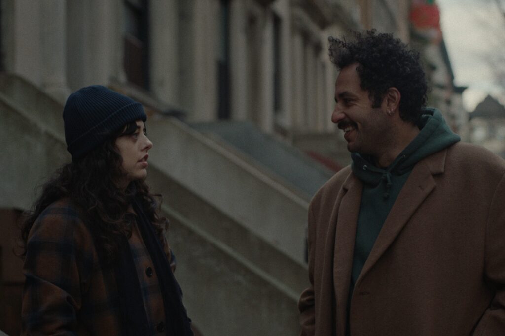 “Or Something” begins in Brooklyn on a cold December day as its lead characters, Olivia and Amir, “meet cute” outside a brownstone. Except their encounter is anything but cute when Olivia threatens to taser Amir, believing him to be following her. The antagonism doesn’t end there even after the two realize they’re visiting the same person, Teddy, to borrow money.