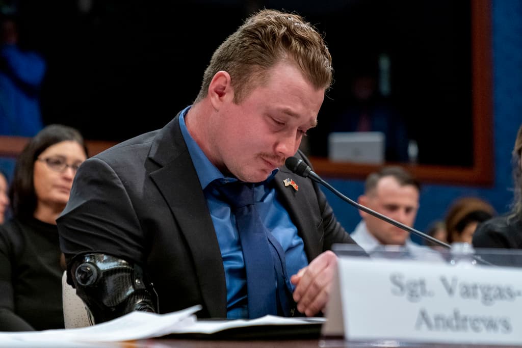 “The withdrawal was a catastrophe in my opinion. And there was an inexcusable lack of accountability and negligence,” Sergeant Vargas-Andrews, who wore a prosthetic arm and scars of his own grave wounds from the bombing, said.