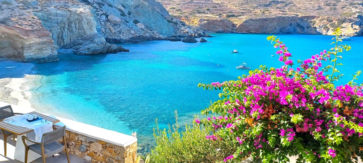 The Chora of Folegandros is car-free and quintessential Cycladic hamlet â whitewashed alleys, pink bougainvillea flowers blowing in the hot breeze, cats that belong to everyone and no one lazing in the sun, casual Greek tavernas that invite lingering. There is a kind of hush here, even in the middle of summer, that offers the flavor of Mykonos or Santorini before the invasion of the cruise ships.